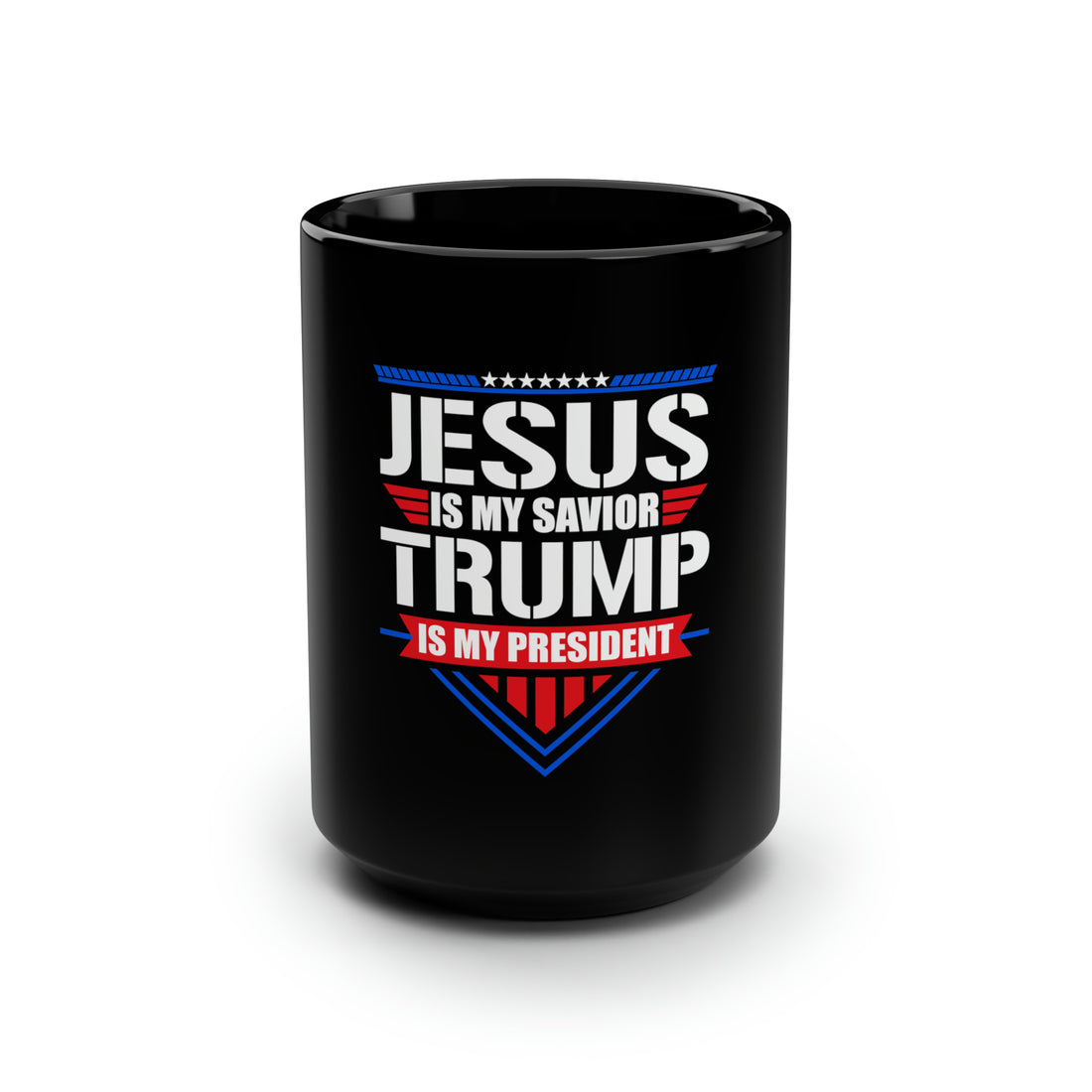 Jesus is My Savior Trump is My President Black Mug 15oz
